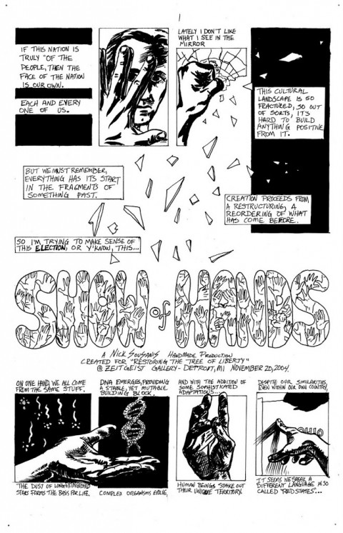 This was created for an art show “Defending the Tree of Liberty” at Zeitgeist Gallery in Detroit immediately preceding the 2004 Presidential Election. Participating in this project (with very short notice), helped get me back into making comics in a very real way again. – N