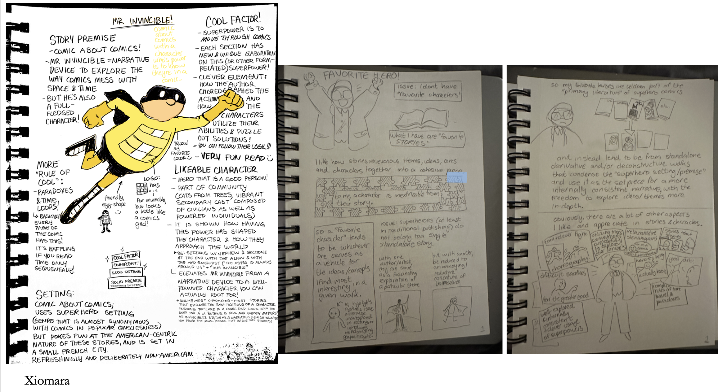 Course Overview: Introduction to the scholarly study of superheroes in comics (and other media), their origins, the kinds of stories and themes addressed throughout their history, along with prominent titles and authors. Students will engage with the material through creative projects, including drawn responses to comics and scholarly readings as well as creating their own superheroes/comics featuring their characters. We’ll explore why the comics medium is well-suited for the impossible action of superhero stories. Final projects will entail a deep dive on a critical aspect of superheroes, and students will present their thinking in comics, other visual media, or written work.